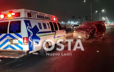 ESCOBEDO, Nuevo León.- Un hombre lesionado de gravedad y el bloqueo de la Carretera a Laredo en Escobedo, fue el saldo de un fuerte choque vehícular la mañana de este lunes 29 de abril.