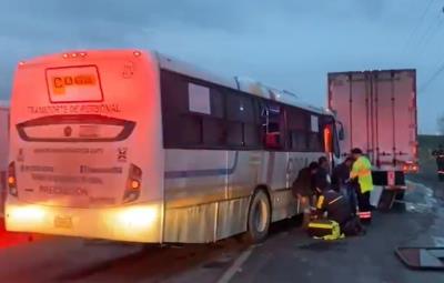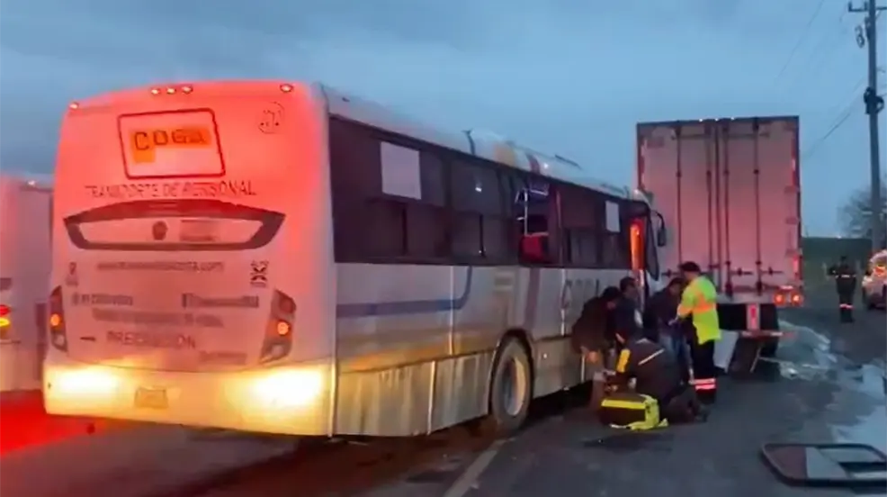 APODACA, Nuevo León.- En un desafortunado incidente ocurrido en la Carretera a Laredo, un camión de transporte se impactó en la parte trasera de un trailer, lo que dejó 14 heridos.