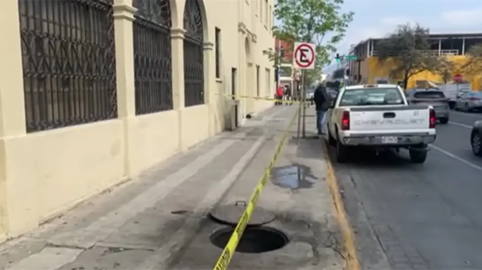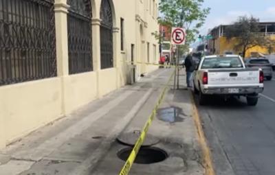 MONTERREY, Nuevo León.- Elementos de Protección Civil de Nuevo León atendieron durante la tarde de este domingo un conato de incendio en dos registros subterráneos de la Comisión Federal de Electricidad en el cruce de las calles Doctor Coss y Raymundo Jardón en el Barrio Antiguo de Monterrey.
