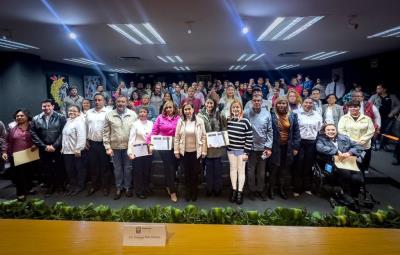 Durante la ceremonia de graduación, la alcaldesa resaltó que esta generación eleva el número total de alumnos graduados de la Escuela de Artes y Oficios a más de 15,400 desde el año 2018.