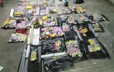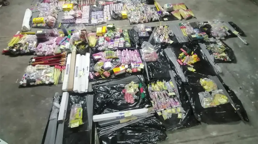 Como resultado, se aseguraron 155 kilos de material explosivo, en paquetes con luces de bengala, 'brujitas', “cebollitas' y 'palomas', que eran comercializados en la vía pública.