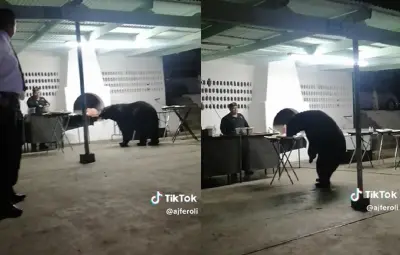 Una de las personas que se encontraba en la fiesta le dijo al personal de seguridad: '¡Déjalo, déjalo, déjalo, déjalo!', por lo que el oso continuó comiendo plácidamente. El video fue compartido por el usuario de TikTok, ajferoli, y hasta el momento suma más de 53 mil reproducciones y 2270 me gusta.