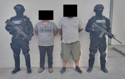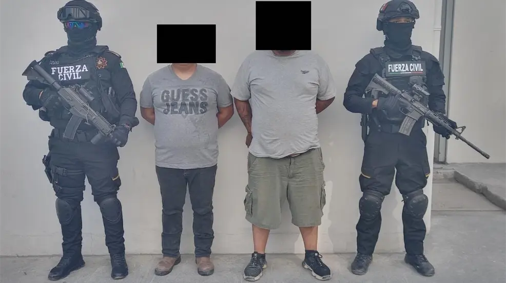 APODACA, Nuevo León.- En una acción exitosa, elementos de la Fuerza Civil lograron la detención de dos hombres señalados como presuntos integrantes de un peligroso grupo delictivo independiente en el municipio de Apodaca.