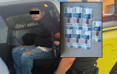 Un hombre fue detenido por oficiales de la Policía de Monterrey, cuando intentaba hacer dos depósitos con varios billetes apócrifos en una tienda de conveniencia Oxxo en la colonia Paseo de Cumbres.