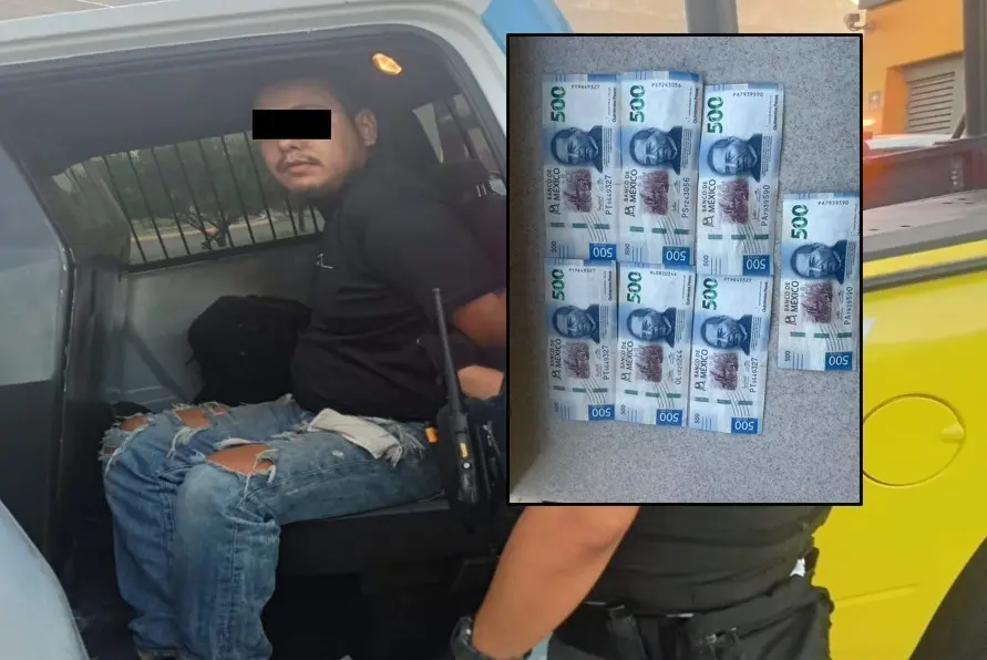 El detenido, identificado como Héctor Antonio L., de 30 años y originario de Veracruz, fue sorprendido intentando depositar 5 mil pesos en billetes falsos y luego intentando realizar otro depósito de 3 mil 500 pesos.