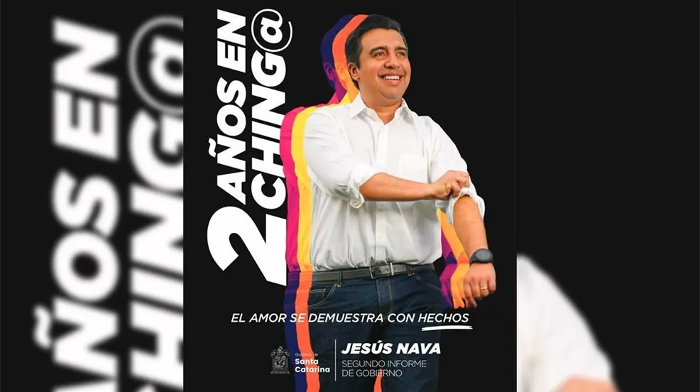 SANTA CATARINA, Nuevo León.- El alcalde de Santa Catarina, Jesus Nava, dará su segundo informe de gobierno para resaltar los compromisos con los habitantes del municipio en los últimos dos años, bajo la singular y disruptiva frase en “DOS AÑOS EN CHING@“.