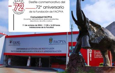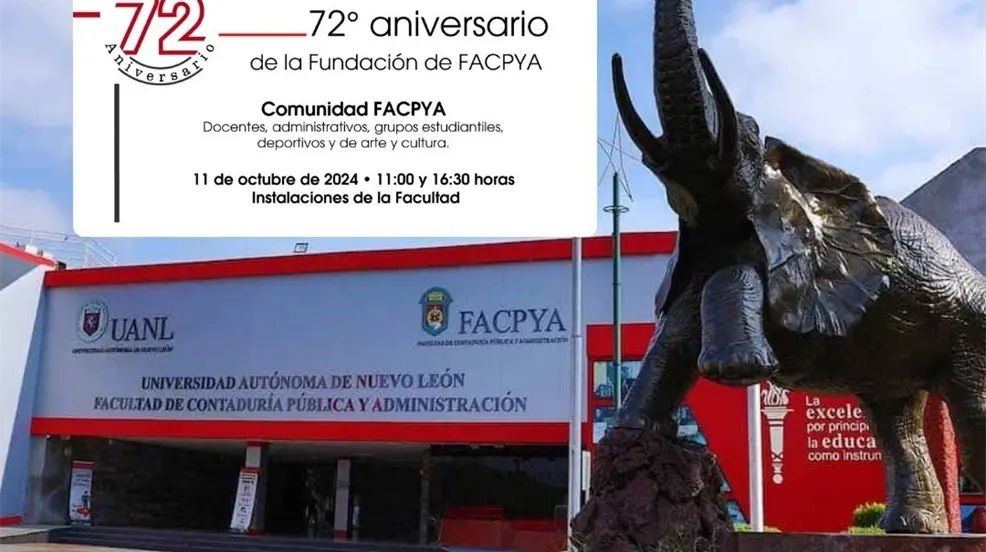 SAN NICOLÁS DE LOS GARZA, Nuevo León.- La Facultad de Contaduría Pública y Administración (FACPYA) de la Universidad Autónoma de Nuevo León (UANL) se encuentra celebrando su 72º aniversario, destacando décadas de formación de líderes y contribuciones significativas en el ámbito académico.