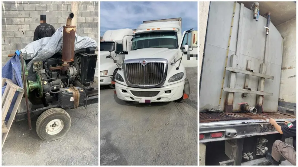 En el lugar, los elementos aseguraron dos tractocamiones con caja seca en cuyo interior había un contenedor de los denominados artesanales, con válvula de entrada y salida, así como con medidor de fluido en cada uno de los vehículos. Solamente uno de los contenedores, con capacidad de 40 mil litros, estaba lleno en su totalidad