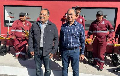 Entre el equipo entregado se encuentran dos camionetas tipo estaquita para labores de supervisión, dos camiones de tres y media toneladas para limpieza y recolección de basura y escombros en calles y avenidas.