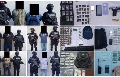 Además, un adolescente de 16 años fue arrestado en la intersección de las calles Brasil y Argentina, portando envoltorios de marihuana y dinero en efectivo. Finalmente, en el centro del municipio, se detuvo a una mujer con más envoltorios de marihuana, bolsas con sustancias similares a la cocaína, una mochila, una radio frecuencia y un celular.