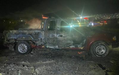 El incendio consumió aproximadamente el 70% de la camioneta Ford F150 de color rojo con placas PS-1463-A.