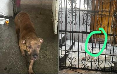 Rescate exitoso de perrito atorado en barandal en su casa en Monterrey