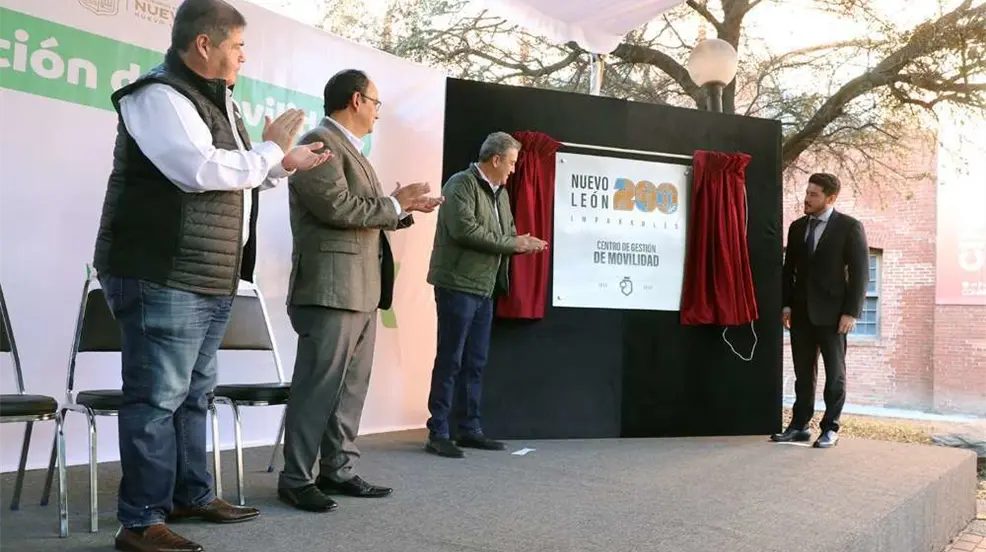 NUEVO LEÓN.- El gobernador Samuel García Sepúlveda durante la develación de la placa de los 200 años de Nuevo León, resaltó la importancia de invertir en transporte público masivo como una alternativa para mitigar el tráfico vehicular en la zona metropolitana de Monterrey.