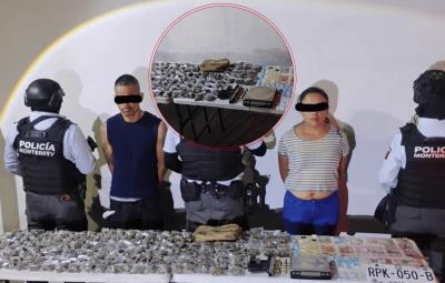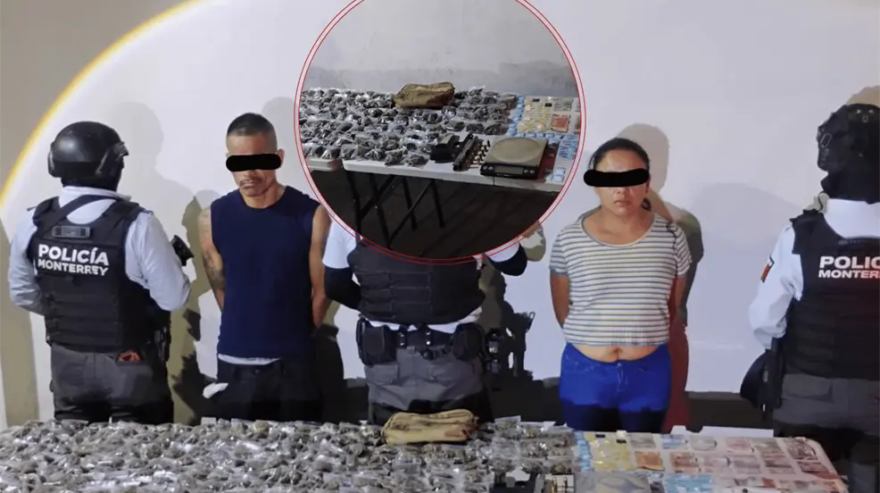 La pareja fue trasladada a las instalaciones de la Policía de Monterrey donde quedó a disposición de las autoridades competentes.