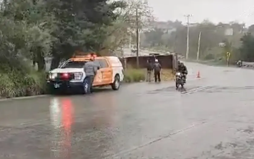 Ante ello, elementos de Protección Civil de Nuevo León han respondido a un reporte de volcadura de un camión en la Carretera Allende Cadereyta, específicamente en el kilómetro 10.