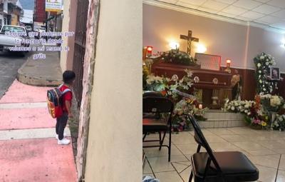 Un niño grita al exterior de una funeraria donde fue velada su abuelita, aún tiene la esperanza de volverla a ver pese a que su madre le explicó que ella está en el cielo.