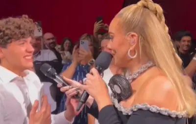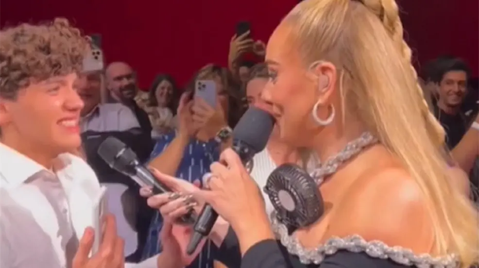 Adele bajó del escenario para saludar a sus fanáticos e intercambió palabras con Sebastián quien lucía muy emocionado y le reveló que estaba cumpliendo años, a lo que la cantante le preguntó si venía acompañado y el joven le respondió que estaba con su mamá.