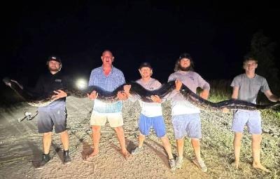 El estadunidense Mike Elfenbein, director ejecutivo del capítulo Cypress de la organización conservacionista nacional Izaak Walton League of America, decidió ir a cazar pitones el pasado viernes 3 de noviembre y se encontró con un ejemplar gigante.