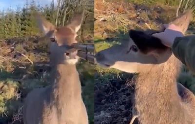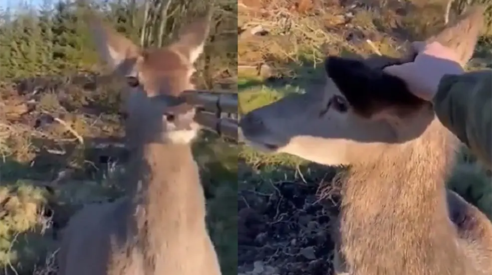 El cazador no podía creer que el pequeño venado se había aproximado hasta él como si fuera a saludarlo, pese que el venado se encontraba acompañado de otro ejemplar. El cazador tenía su rifle apuntando en la cabeza del venado, decidió bajarlo y lo acarició en la cabeza y comenzó a reir.