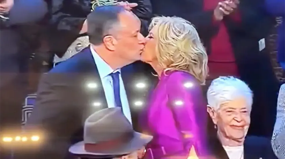 Un saludo entre Jill Biden y el esposo de Kamala Harris, se volvió viral, pues pareciera que se besan en la boca.