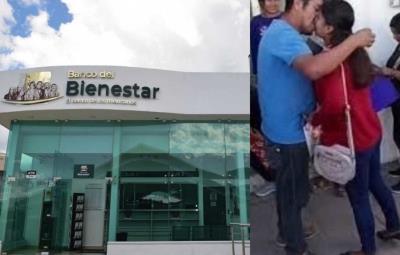 Una pareja se comprometió en la fila de un banco del Bienestar en Tabasco. Todo quedó captado en video.