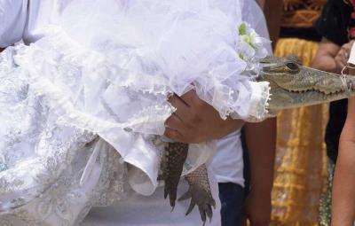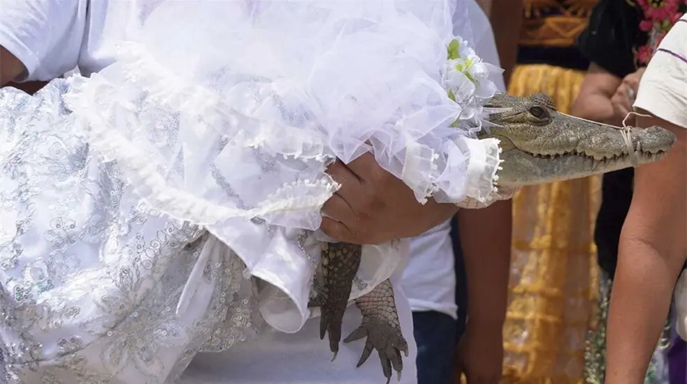 La unión entre un hombre y un caimán hembra se celebra en este pueblo desde hace más de 230 años para conmemorar el día en que dos etnias de la región, los huaves y los chontales, se integraron gracias a una boda.