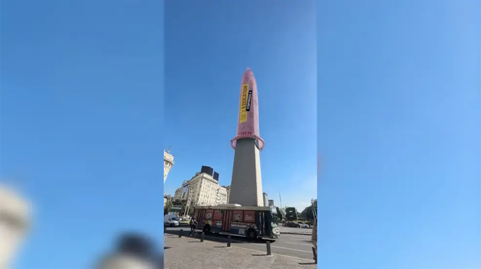 Le ponen condón al Obelisco, porque se viene nueva temporada de Sex Education