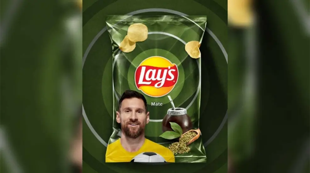 El futbolista argentino, Lionel Messi, es imagen de las papas Lays y promociona su nuevo sabor mate, infusión que se acostumbra en Argentina y Uruguay.