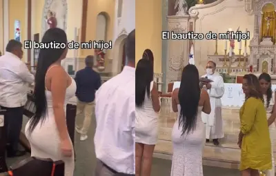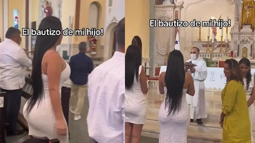 CIUDAD DE MÉXICO.- Una mujer que llevó a bautizar a su hijo a una Iglesia católica robó miradas de los feligreses y causó polémica luego que utilizara para esa ocasión especial un vestido blanco ajustado; algunos la consideraron pecadora y otros manifestaron su intención en que la mujer sea su comadre.