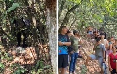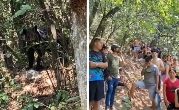 Un video publicado en TikTok por un joven identificado como Ray Monsiváis muestra a sus amigos y otras personas detenidos en uno de los senderos por la presencia del animal salvaje que estaba detrás de unos árboles, pero que un movimiento podría representar la alteración del ejemplar.
