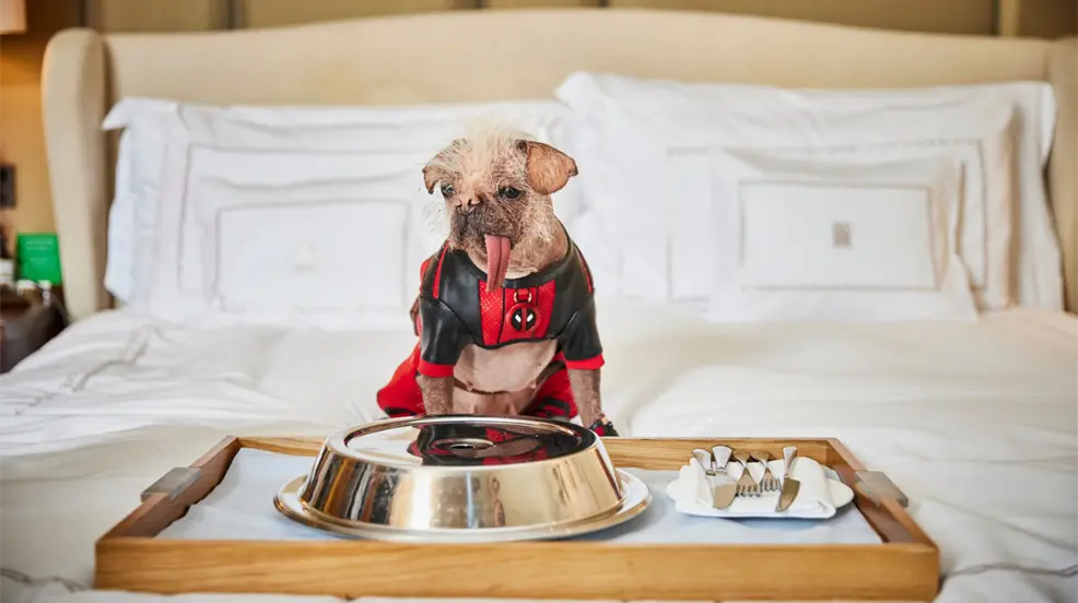 La perrita Peggy es la encargada de dar vida a la versión de cuatro patas de “Deadpool”, y ha logrado captar la atención de los espectadores por su singular aspecto. Antes de ser conocida con el uniforme rojo y negro, Peggy se hizo con el título del “perro más feo de Gran Bretaña” en 2023.