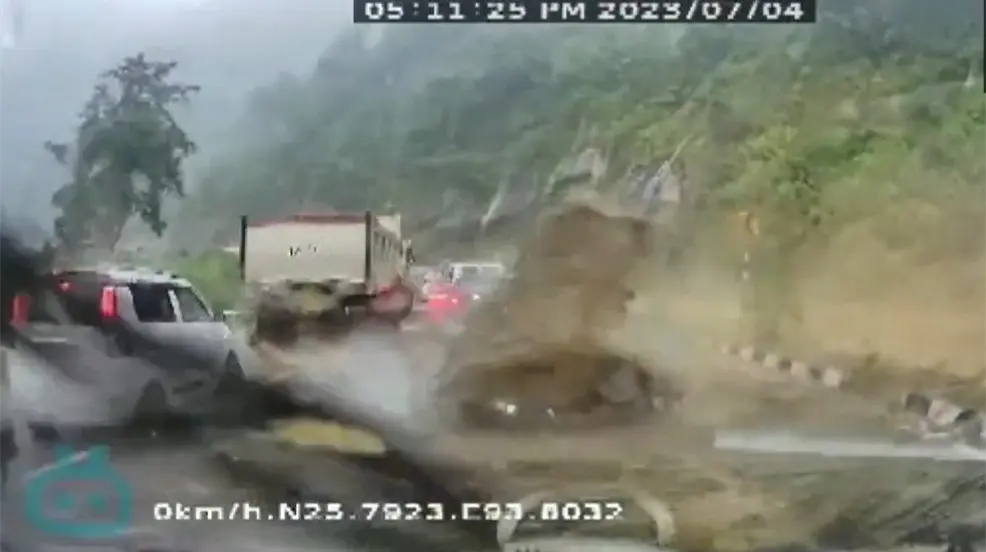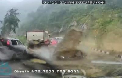 NAGALAND, India.- Un auto quedó completamente aplastado tras caerle una enorme roca en plena carretera, el video de este brutal accidente se volvió viral.