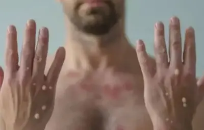 - Una erupción con llagas que pueden parecer granos o ampollas. Puede aparecer en la cara, dentro de la boca y en otras partes del cuerpo, como las manos, los pies, el pecho, los genitales o el ano. Pasa por diferentes etapas, incluyendo costras, antes de curarse. Esto puede tomar de 2 a 4 semanas