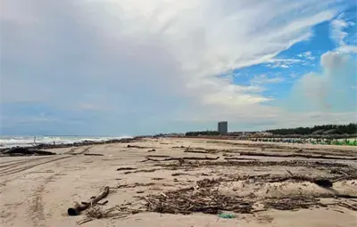 Toneladas de palizada y basura fueron arrastradas por la creciente del río Pánuco hasta playa Miramar; autoridades mantienen labores de limpieza.