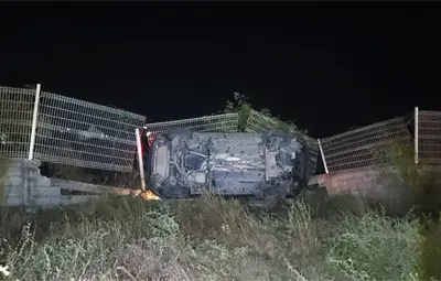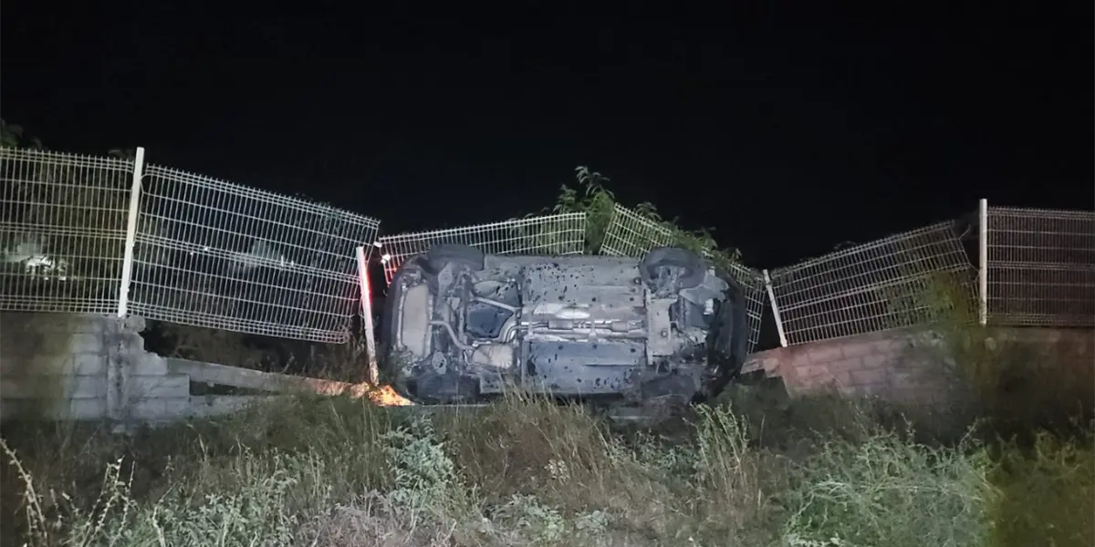 Testigos señalaron que, en cuestión de segundos, el auto abandonó la superficie de rodamiento, volcó y terminó estrellándose con fuerza contra una barda. El impacto fue tan severo que la unidad quedó recostada sobre uno de sus costados dentro de un predio cubierto de maleza.