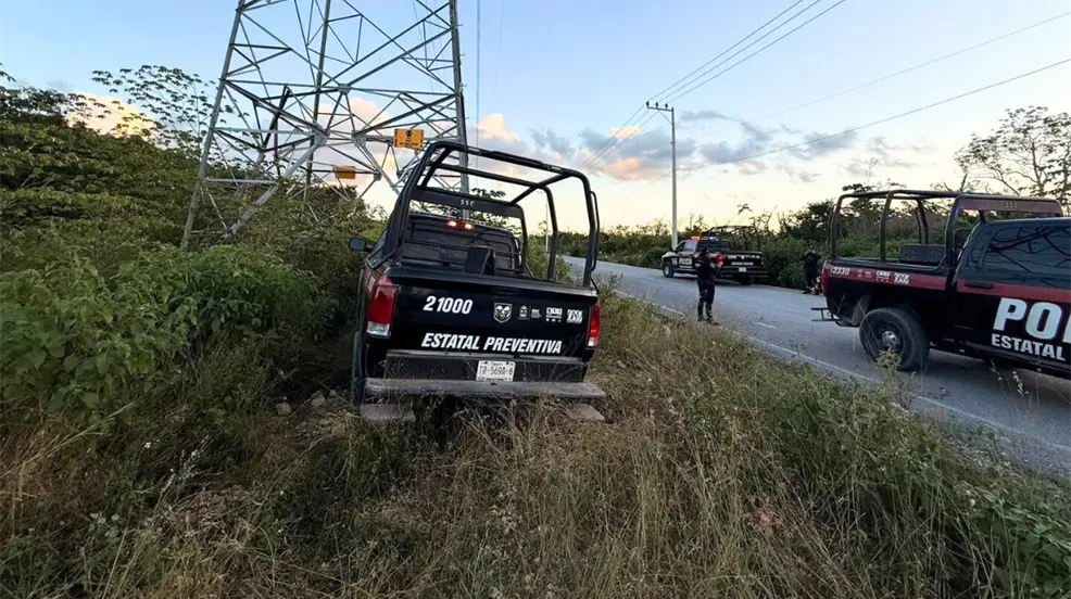 Patrulla se estrella contra torre de CFE durante persecución en Tulum; sospechosos huyen